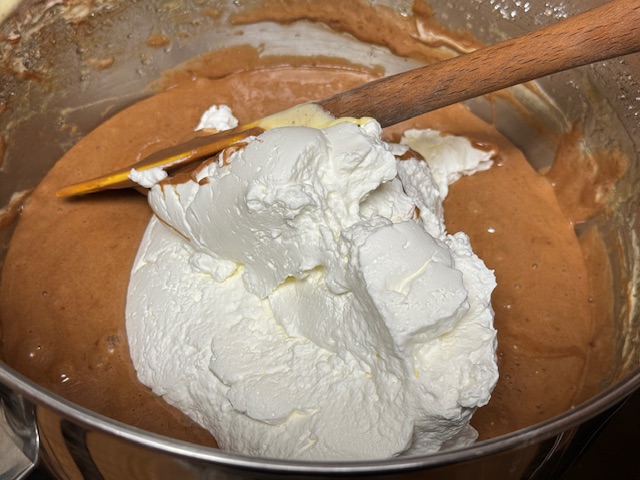 1. Ajouter la crème chantilly. Plier avec une maryse, jusqu’à ce que le mélange devienne une mousse.
