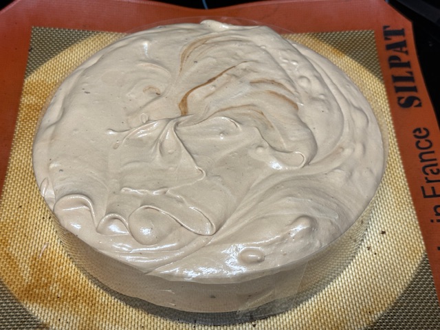 1. Laisser figer dans le congélateur pendant 10 minutes, puis mettre le dacquoise en haut et appuyer légèrement dans la mousse.