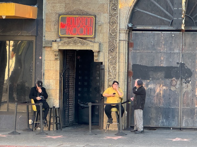 Cette fois, l’événement était à The Bourbon Room à Hollywood, club de royalistes expatriés. Nan, je plaisante un peu. C’est à Hollywood, mais le « bourbon » ici est le whiskey lié à l’état de Kentucky, à base de maïs. Mais l’eau-de-vie doit son nom à Louis XVI., à cause de son soutien de la Révolution. Non, L’AUTRE Révolution du XVIIIe siècle.