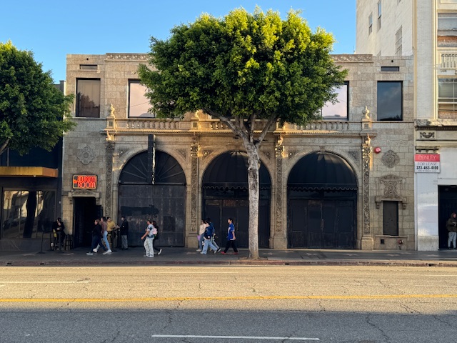 Alors, les portes se sont ouvertes à 19h, mais le spectacle n’a commencé qu’à partir de 20h. Vu que je suis arrivé à 18h20, j’ai fait une petite balade autour du quartier. Mais d’abord, j’ai dû conduire par le vieux quartier du centre-ville où j’ai pris des trains chaque semaine pendant 3 ans. Voici la prison du comté de LA pour les hommes, en face de la gare (j’ai pris les photos de l’autoroute ; la gare n’est pas visible) :