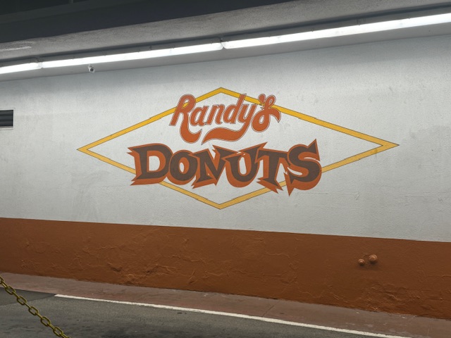 Étant malheureux, j’ai passé par chez Randy’s Donuts, à côté de LAX (l’aéroport) et ouvert 7/24 depuis 1952 :