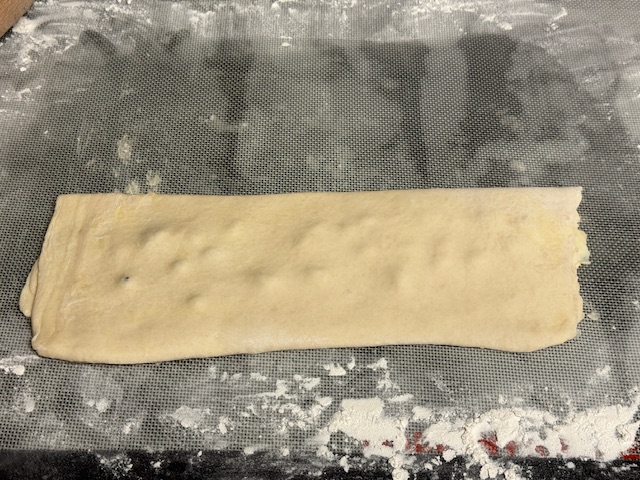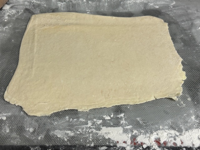 2. Étaler la pâte feuilletée, environ deux fois plus long que large.