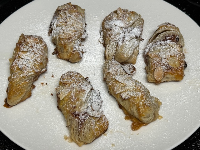 Alors, les sacristains. On dit que ce dessert a ses racines au Moyen-Âge, mais la pâte feuilletée restait inconnue à l’époque. Ce que l’on trouve le plus souvent est une pâtisserie à base de pâte feuilletée avec des amandes effilées, torsadé en forme de spirale. Mais il y a des versions remplies avec de la crème pâtissière, de la crème d’amandes, des pépites de chocolat (ma recette est plus proche de celle-ci), ou autrement. Vu que la Fête de la Fraise s’est passé à Carpentras ce week-end, j’ai donc décidé d’ajouter un thème de fraises aux miens.