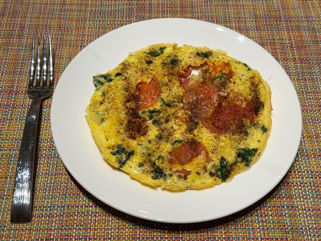 1. Faire cuire pendant 5-6 minutes le côté. J’ai utilisé une assiette pour faire sauter les œufs.
