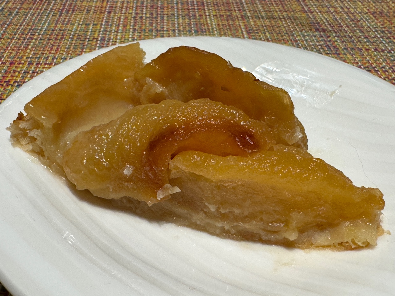 Vous allez dire, « Mais Justin, ça a l’air bon — mieux qu’avant ». Et vous avez raison. Si je l’ai servie chez moi, il n’y aurait rien pour m’en plaindre. Au fait, la photo de la tranche est les restes qui sont rentrés avec moi.