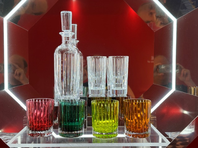 Puis on passe à la grande partie de cette chambre en forme de « L ». Là, on trouve le plus vieux produit de Baccarat, les verres « Harcourt », fabriqués depuis 1841 :