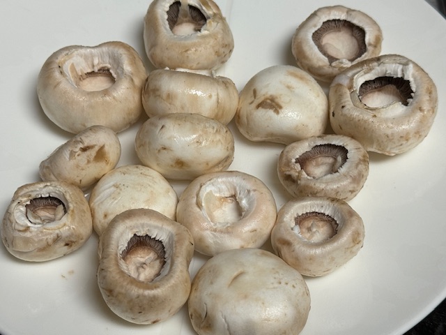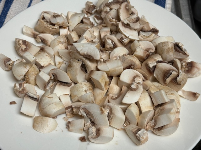 1. Rincer les champignons, retirer les pieds, et couper les têtes en dès.