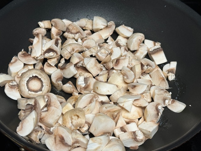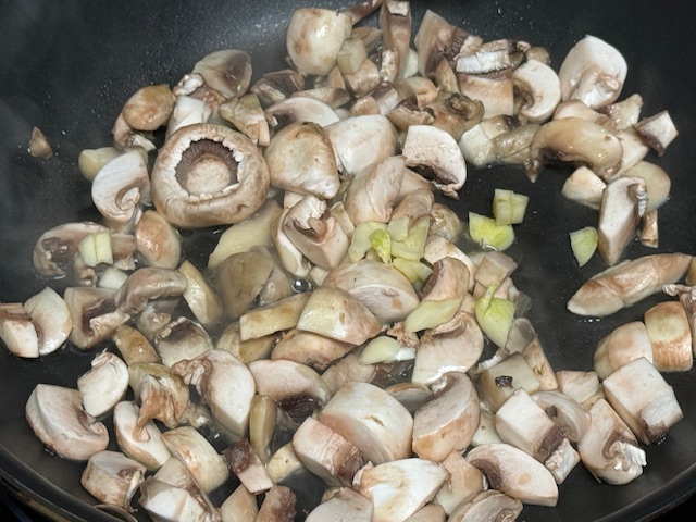 1. Faire revenir les morceaux de champignons dans le beurre. Saler après un peu, puis ajouter l’ail.