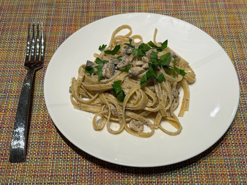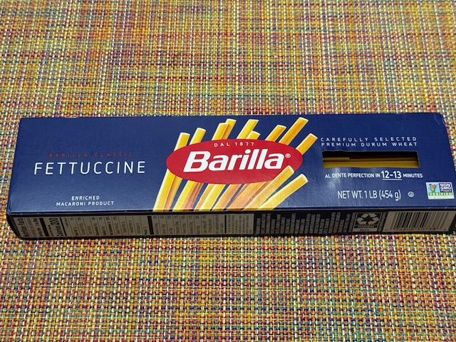 Bonne chance à trouver des tagliatelles dans un supermarché américain ; j’ai utilisé des fettuccines, des pâtes assez similaires même si pas identiques.