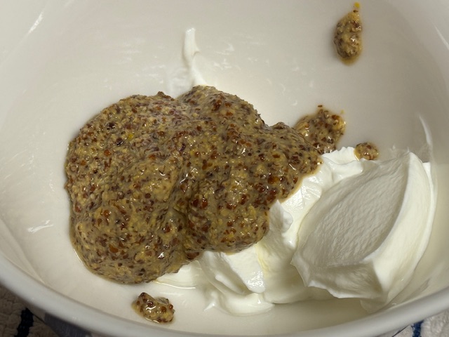 • 2 cuillères à soupe de moutarde de Meaux Pommery