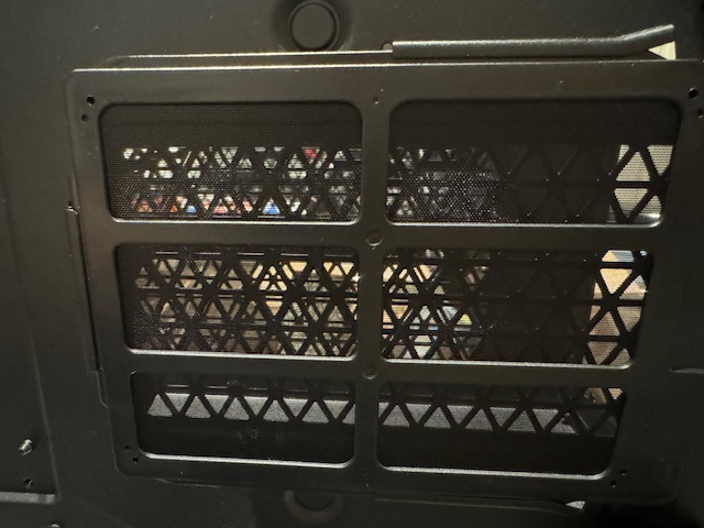 Quelque chose d’intéressant qui n’était pas sur le vieux boîtier — un filtre en bas contre la poussière. On peut le retirer pour le nettoyer. Je vous rappelle — je sais :