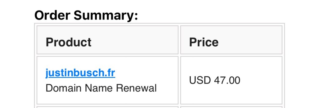 C’est si cher car je dois payer une agence européenne pour garder le domaine à mon nom. Mais pas comme aux États-Unis, où je suis en concurrence avec un chirurgien (qui travaille à quelques km de chez moi), un avocat, un musicien et un ingénieur pour les droits à mon nom — bon, notre nom — en France, je peux être moi-même. Dans plusieurs sens, vraiment.