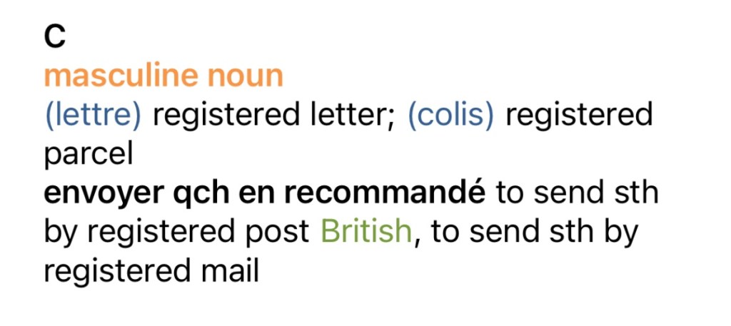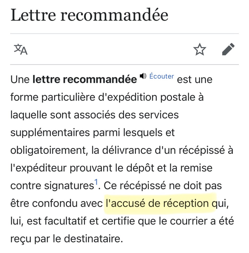 J’avais l’impression que « lettre recommandée » serait quelque chose de légal et je n’étais pas déçu :