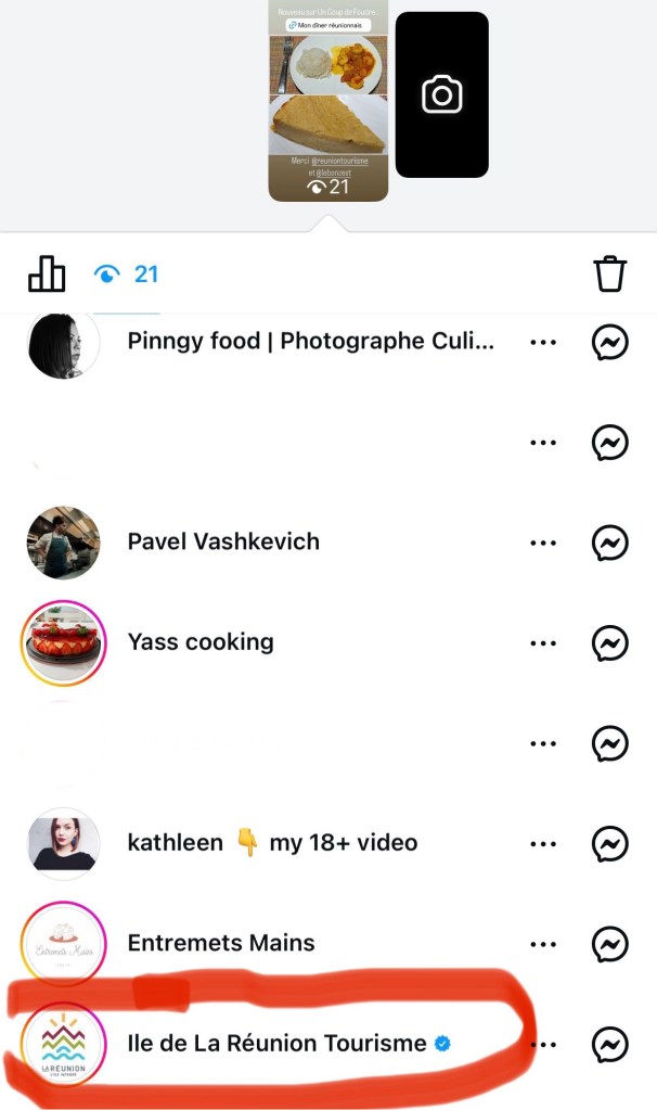 Au moins Île de La Réunion Tourisme est un grand compte avec 165 000 abonnés. Il y en a des beaucoup plus petits qui gardent le dos tourné. Je peux pardonner de tels restos que Chez Gégène ou Le Grand Charles pour ignorer de tels clins d’œil, car ils ne sont pas très actifs sur leurs comptes. (Est-ce que je viens de cafarder sur eux ? Mais oui.) Mais au-delà Claire Heitzler pour sa tarte aux figues, la dernière fois où quelqu’un lié au Tour m’a laissé une mention j’aime pour avoir utilisé sa recette…il faut remonter le temps en octobre 2023 pour en trouver une autre. Il y a exactement 4 autres exemples.