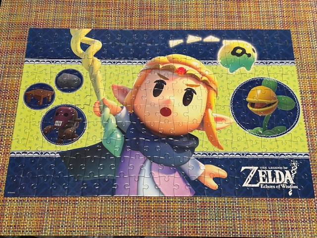 Le nouveau jeu Zelda est sorti il y a une semaine, mais je ne l’ai pas touché du tout jusqu’à la rentrée de La Fille. En fait, je ne l’ai toujours pas touché, car c’est elle qui a tenu la manette toute cette semaine. Il y avait un puzzle qui allait avec, offert par les magasins de chez Cible — désolé, Target (le logo explique tout — au fait, on prononce souvent le nom de cette chaîne avec un faux accent français). Voilà :