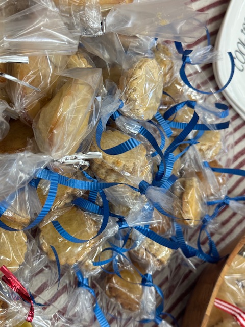 Samedi matin, le Marché de Noël de l’OCA a eu lieu. J’ai fait une soixantaine de chacun des macarons à la framboise et des schwowebredeles. Au passé, j’aurais fait juste l’un ou l’autre, mais on a perdu un resto ici dont le chef faisait des dons pour cet événement, et je voulais assurer qu’il y aurait assez de stock. Il y avait aussi deux nouvelles responsables, et il m’était important que leur première fois réussisse. Voici mes contributions :