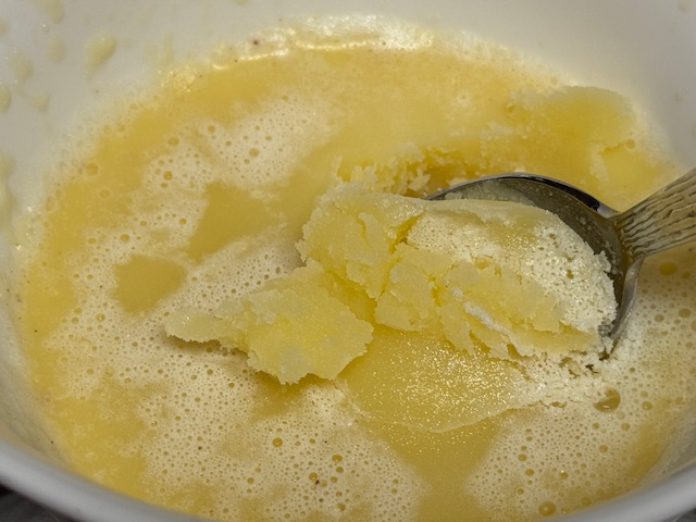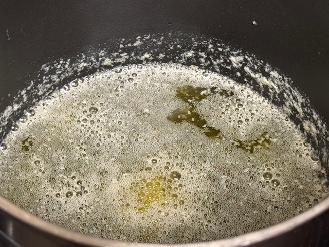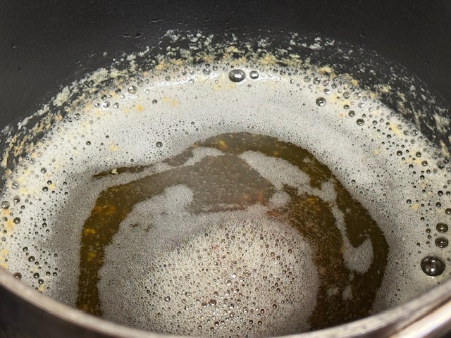Il y a une technique ici qui était nouvelle pour moi, celle du beurre noisette, à ne pas confondre avec une noisette de beurre. Il faut le faire cuire, et ça prendra du temps avec une espèce de cuisinière inutile comme la mienne. (Feu moyen est une blague pourrie, car ça veut dire qu’elle s’éteint la moitié du temps.) Je vous partagerai des photos qui montreront ce à quoi il faut absolument attendre.