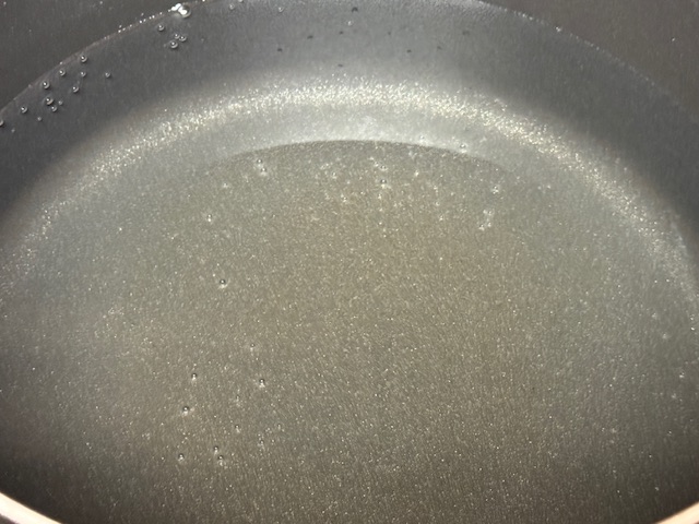 1. Dans une grosse poêle, faire chauffer de l’huile d’olive sur un feu moyen — juste assez d’huile pour couvrir le fond de la poêle.