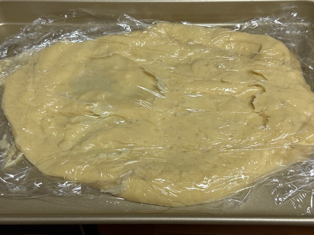 - Couvrir une plaque avec du film à contact. Y verser et étaler la crème puis couvrir avec plus de film. La mettre au frigo pendant 1 heure.