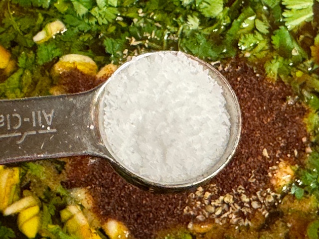 - Y verser la poudre de piment, le cumin, l’origan et 1 cuillère à café de gros sel. Poivrer selon vos goûts et fouetter le tout.