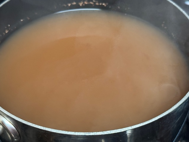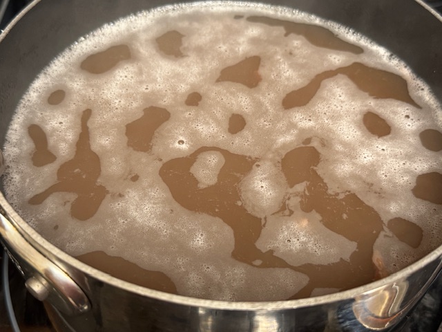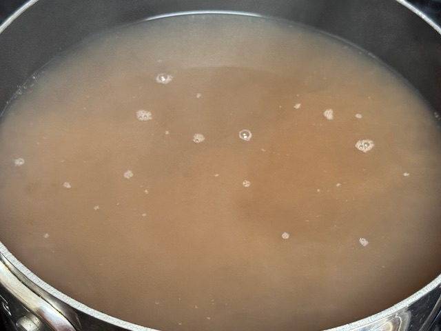 - Vers la fin des 1 1/2 heures, porter 500 ml d’eau à ébullition et ajouter assez d’eau chaud aux haricots pour remplacer l’eau perdue.