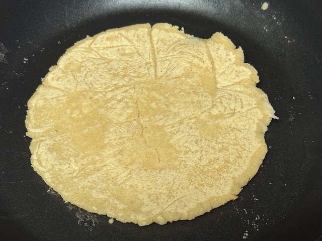 C’est de la farine de maïs, mais pas seulement. La farine est « nixtamalisée », traitée avec une solution de poudre de calcaire. Une farine de maïs « normale » ne se transformera pas en pâte à tortilla avec juste de l’eau. C’est pourquoi les mexicains font aussi des tortillas à base de farine de blé, mais celle-ci est plus rapide.
