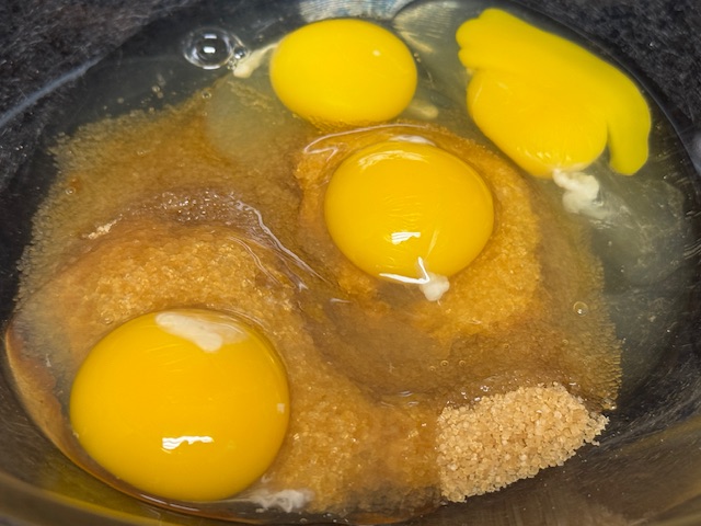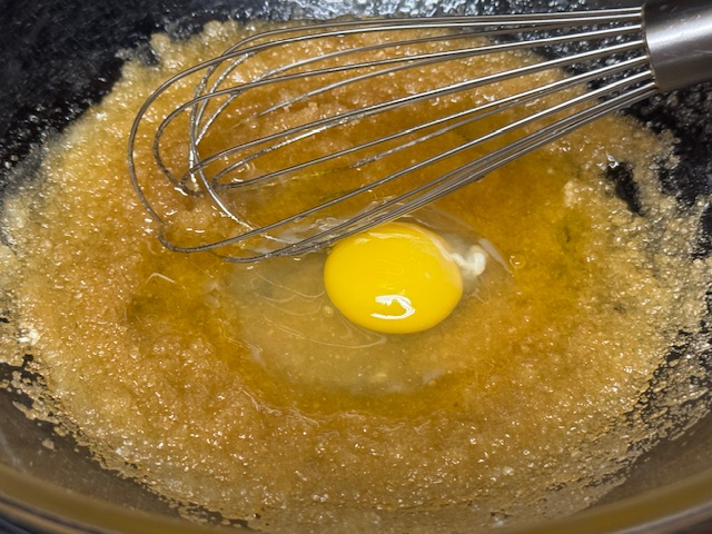 1. Ajouter la cassonade et le sucre en poudre. Fouetter ensemble. Ajouter l’œuf et fouetter plus.