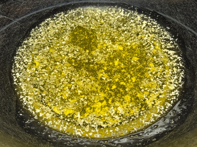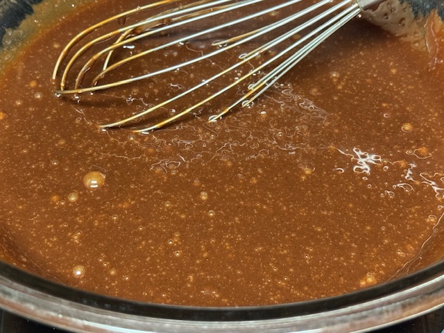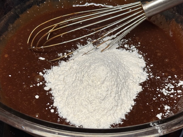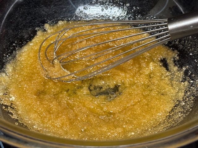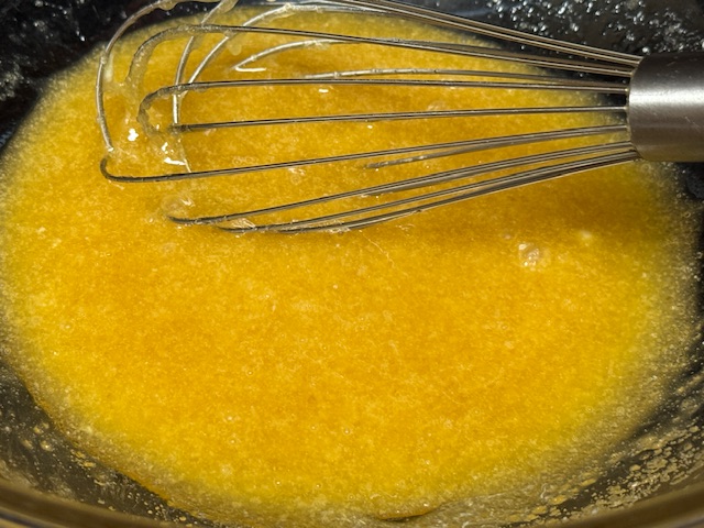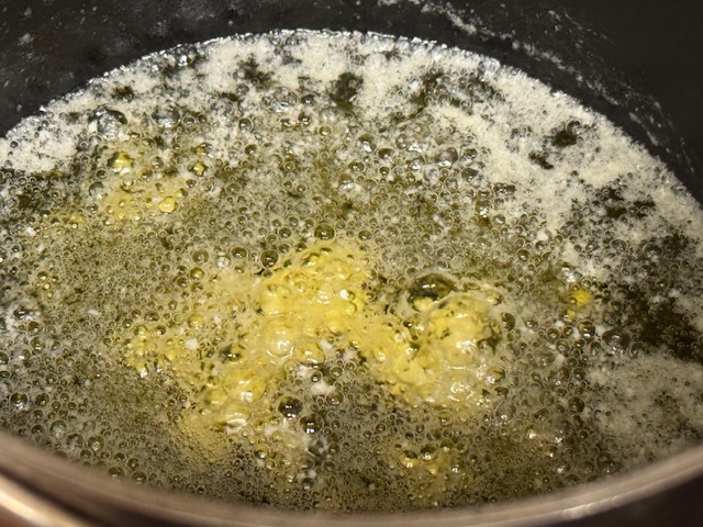 1. Faire fondre le beurre dans une casserole sur un feu moyen, et continuer à le faire cuire jusqu’à ce qu’il devienne un beurre noisette. (Ça prend du temps.)