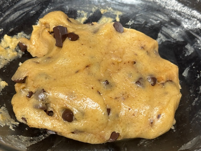 1. Verser les pépites de chocolat dans la pâte et mélanger bien.