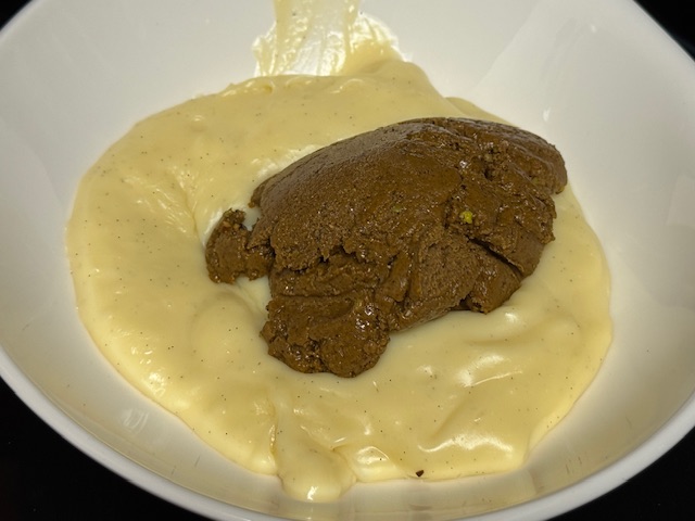 - Ajouter 100 grammes de praliné pistache au bol. Remuer bien.