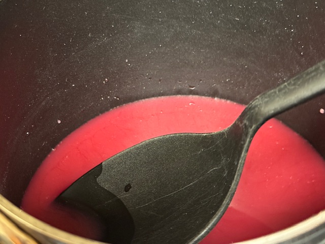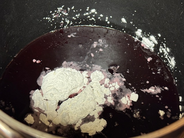 - Verser 240 ml du jus de cerises dans une casserole — c’est important que ce soit le jus d’en haut, avec du sucre et du jus de citron déjà ajoutés. Ajouter 1 cuillère à soupe de maïzena.