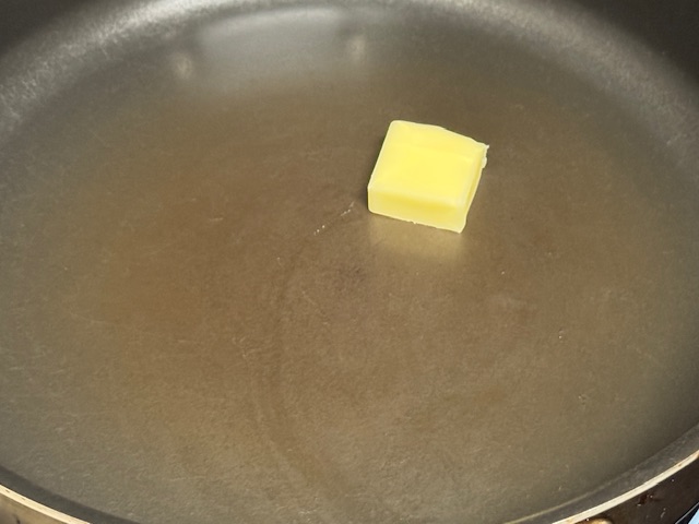 - Mettre du beurre dans une grosse poêle, sur un feu moyen. Dès que le beurre est fondu, baisser le feu à doux-moyen.