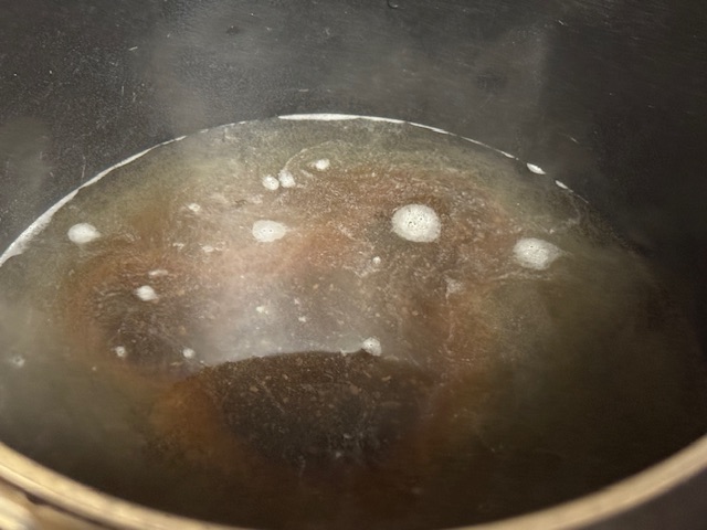 - Préparer le bouillon de bœuf si besoin. (J’utilise un bouillon concentré, Better Than Bouillon.)