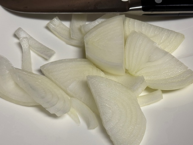 À noter, les autrices suggèrent utiliser soit du « sirloin » soit du « ribeye » pour le bœuf. Voici pourquoi c’était important de discuter ce sujet dans Langue de Molière. Ribeye est entrecôte, mais l’américaine pense à bavette d’aloyau ou faux-filet et l’Australienne à contre-filet. Mais moi, je suis radin avec moi-même, et j’ai acheté du rumsteck en cubes, ce que je pensais jusqu’à cette semaine était du paleron. Cependant, c’était fait exprès. C’était moins de travail pour moi, et je m’en fichais si c’était un peu plus dur. Je note faux-filet dans les ingrédients, mais ce n’est pas la viande dans les photos.