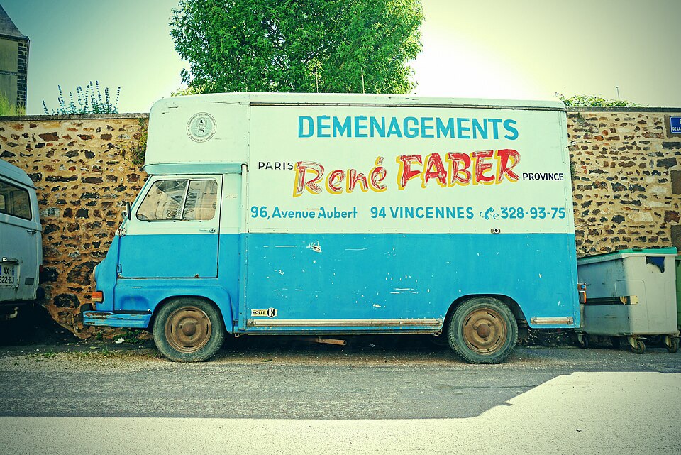 Camion « Déménagements René Faber » à Saint-Sauveur-en-Puisaye, Photo par Marc Dubois, CC BY 2.0