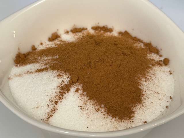 1. Mélanger le sucre et la cannelle dans un bol et bien remuer.