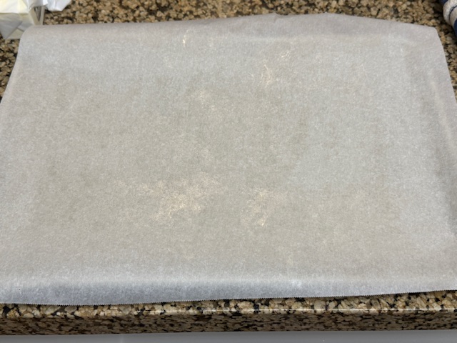 - Mettre du papier de cuisson non-sulfurisé sur une plaque de 30 cm X 22 cm. Graisser légèrement le papier.