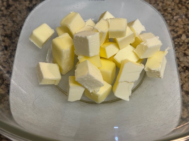 - Dans un saladier, faire fondre le beurre dans un micro-ondes. Y verser le sucre, bien mélanger et couvrir avec du film à contact. Chauffer au micro-ondes pendant 20 secondes de plus.