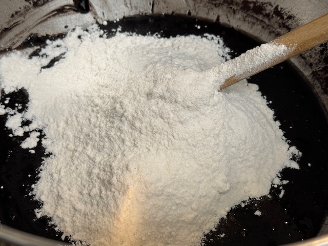 - Une fois que le chocolat est fondu, éteindre le feu. Ajouter le reste du chocolat et continuer à remuer, jusqu’à ce que le tout soit homogène.