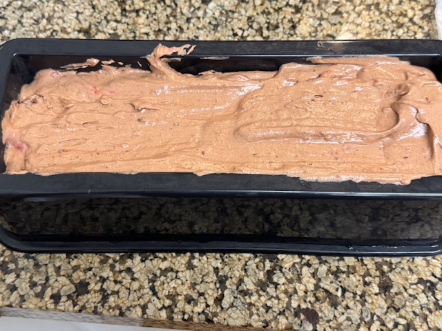 - Verser environ 2/3 de la mousse au chocolat dans le moule à bûche.