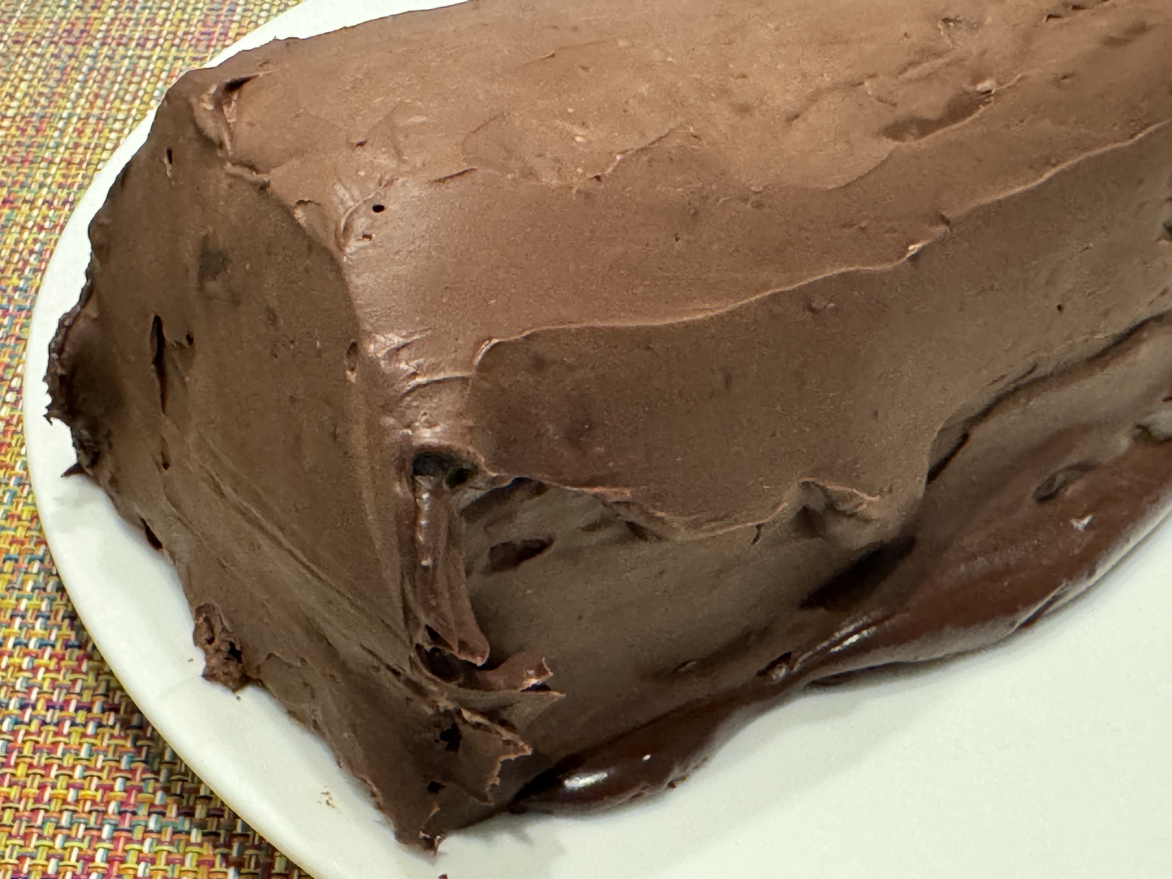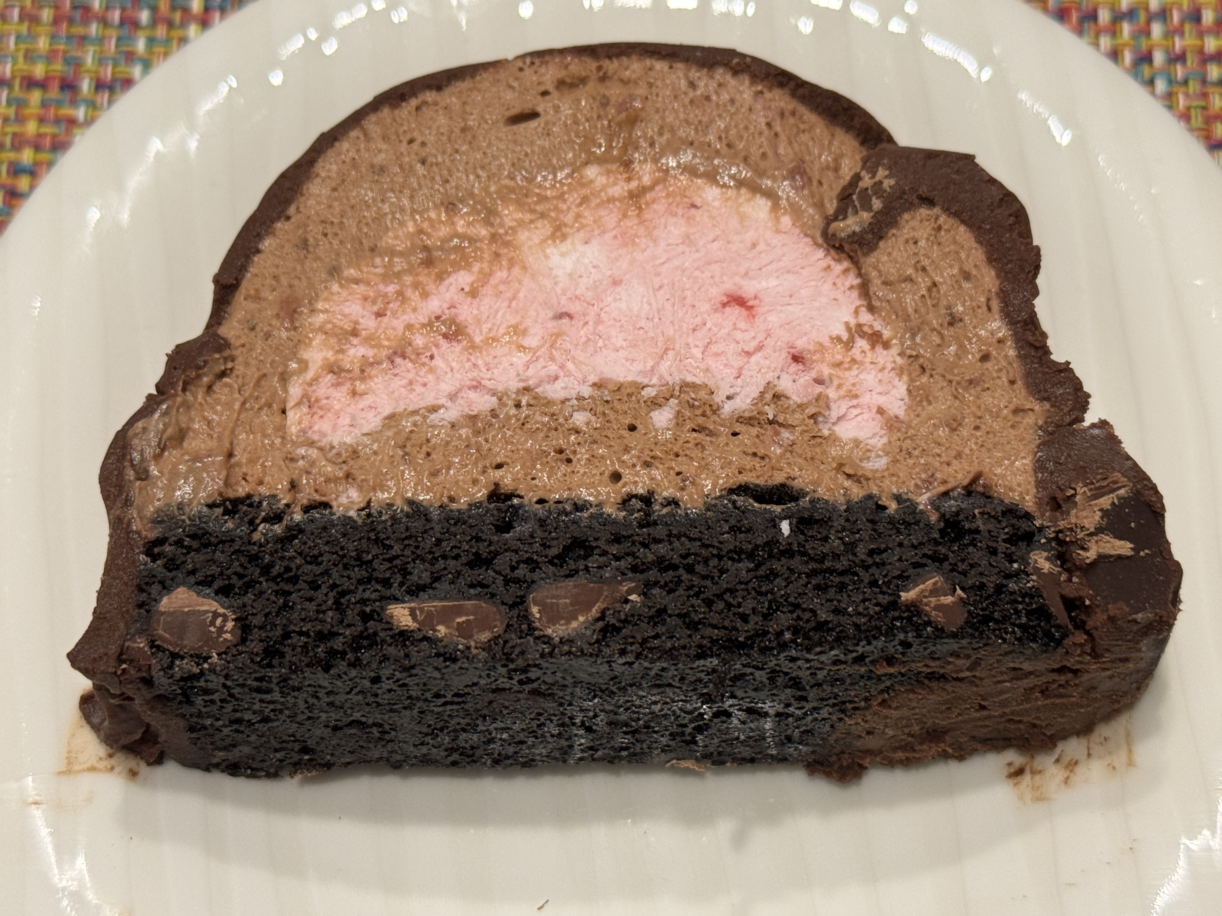 Je ne vais pas vous mentir. Je suis toujours un critique amer de l’aspect de mes réalisations, et cette fois ne fait pas exception — la ganache n’est toujours pas aussi lisse que je ne l’aimerais — mais l’idée ? C’est la bonne. Je vais absolument refaire cette bûche pour des membres de l’OCA. Le seule changement que je ferais à l’idée, c’est de faire une mousse avec des œufs et du chocolat blanc pour la mousse à la framboise, afin que la texture soit comme le reste.