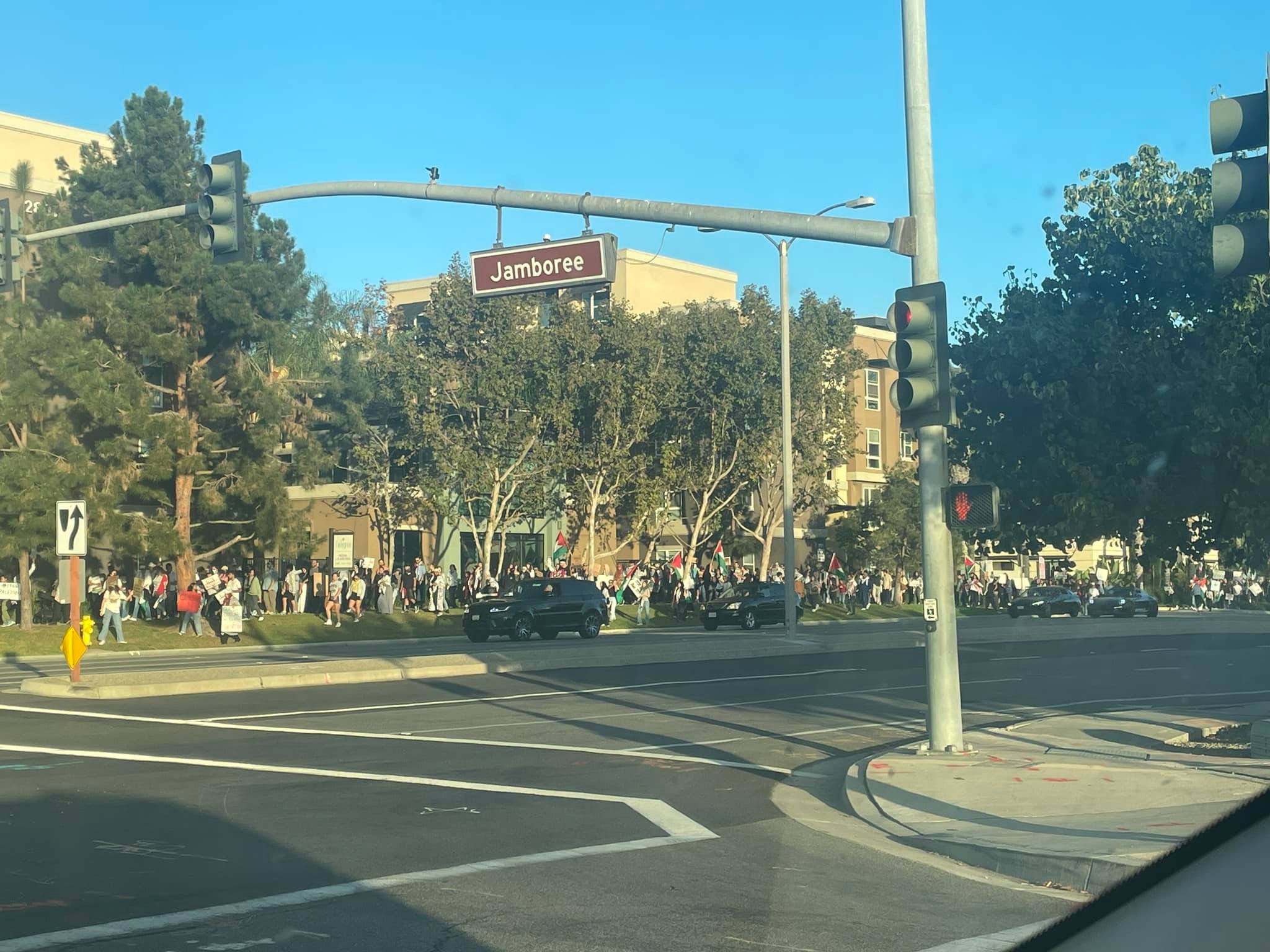 Il y avait un grand défilé, d’environ 1 000 personnes qui est passé à côté de mon immeuble, car j’habitais à côté de la rue la plus importante d’Irvine, Jamboree. J’ai pris des photos, et je vais en partager deux. Ça permet d’identifier une intersection à moins de 500 mètres de mon ancien appartement, raison pour laquelle je ne les ai pas publiées le 23 octobre, le lendemain de l’événement.