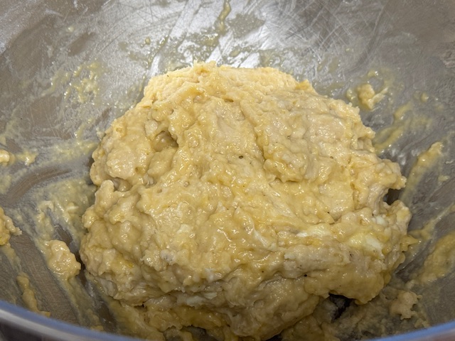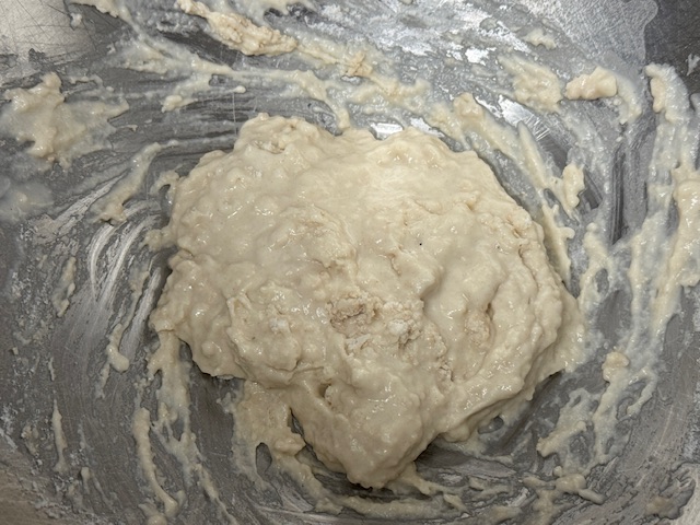 - Une fois que la pâte n’est plus collante, on peut arrêter de pétrir. J’ai trouvé qu’il fallait ajouter 20 grammes de plus de farine afin d’atteindre la bonne texture.