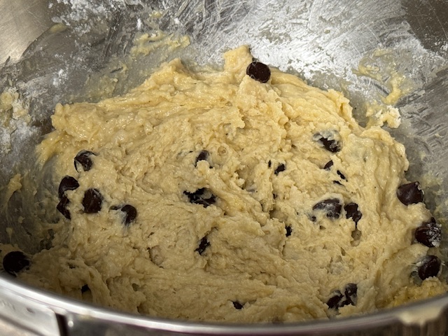 - Ajouter les pépites de chocolat et mélanger avec le crochet.