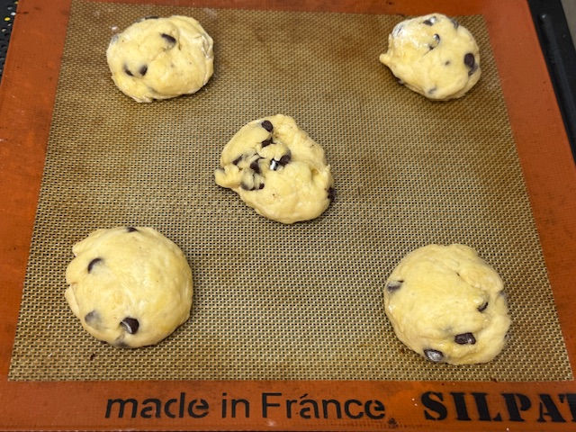 - Couvrir deux plaques à cuisson avec des tapis en silicone ou du papier de cuisson non-sulfurisé. Mettte la moitié des boules sur chaque plaque, avec plein d’espace entre les boules.