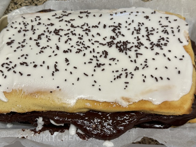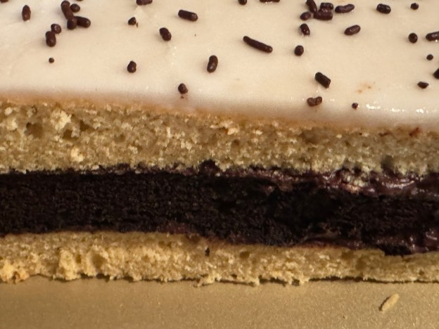 Je crois que ce n’était pas une question de ne pas l’aimer. J’étais surpris à découvrir que certains ne connaissaient pas les Napolitains de LU, alors ce n’était pas le Napolitain de Proust que je l’avais cru pour tout le monde. Mais il m’a fallu 3 heures de travail pour faire ce gâteau (à ne pas mentionner 20 $ d’ingrédients). Je ne voulais pas le couper avant l’événement, et j’ai payé cher pour ça,