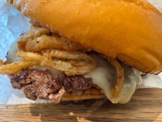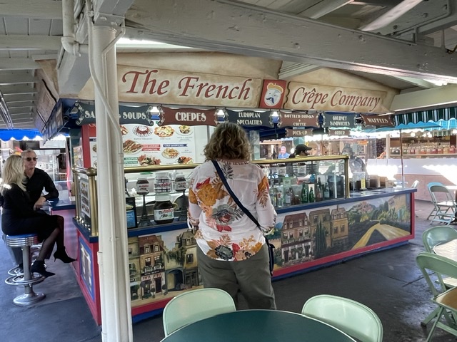 Finalement, j’ai commandé une crêpe « chicken Dijon » (poulet à la moutarde de Dijon). Il y avait un paquet de chips avec, inattendu et apprécié à 14 $. Le nom sur le devant du paquet dit que les chips viennent de Boulder, Colorado, le Chamonix du Midwest. Le dos dit qu’ils sont un produit de chez Utz, un vieux fabricant régional de la Côte Est, peu connu en Californie.