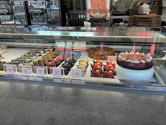 Ces photos comprennent toute la vitrine. Il y avait plein d’espace, et j’ai aperçu la cuisine — c’était énorme et équipée pour faire plus que ça. Je trouve le prix des macarons insultant — 3,59 $ chacun, un niveau Pierre Hermé-esque — et les éclairs ont l’air maison plutôt que pro. Il me semble que l’on est ambitieux, comme moi, et qu’ils espèrent faire encore plus.