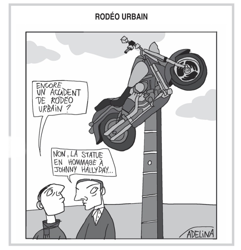 L’une de mes bêtes noires préférées est l’art public. J’ai déjà méprisé le monument à Johnny Hallyday, mais même s’il n’a vraiment rien à voir avec les rodéos urbains, il ne me dérange pas quand Le Canard fait la comparaison.