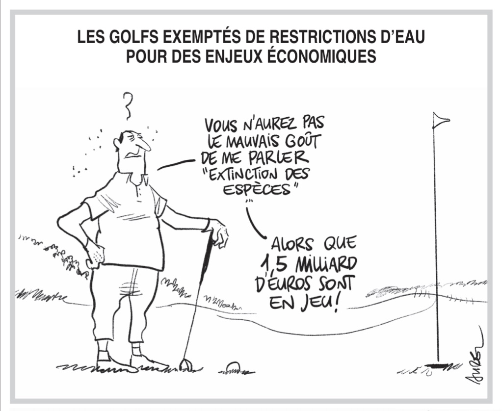 Mais savez-vous où les pelouses ne deviennent jamais marrons ici ? Les terrains de golf, les hôtels Ritz-Carlton, les maisons de Beverly Hills. En même temps, le gouvernement nous fait honte si on ne remplace pas nos pelouses par des cactus. Je comprends trop bien celui-ci aussi :